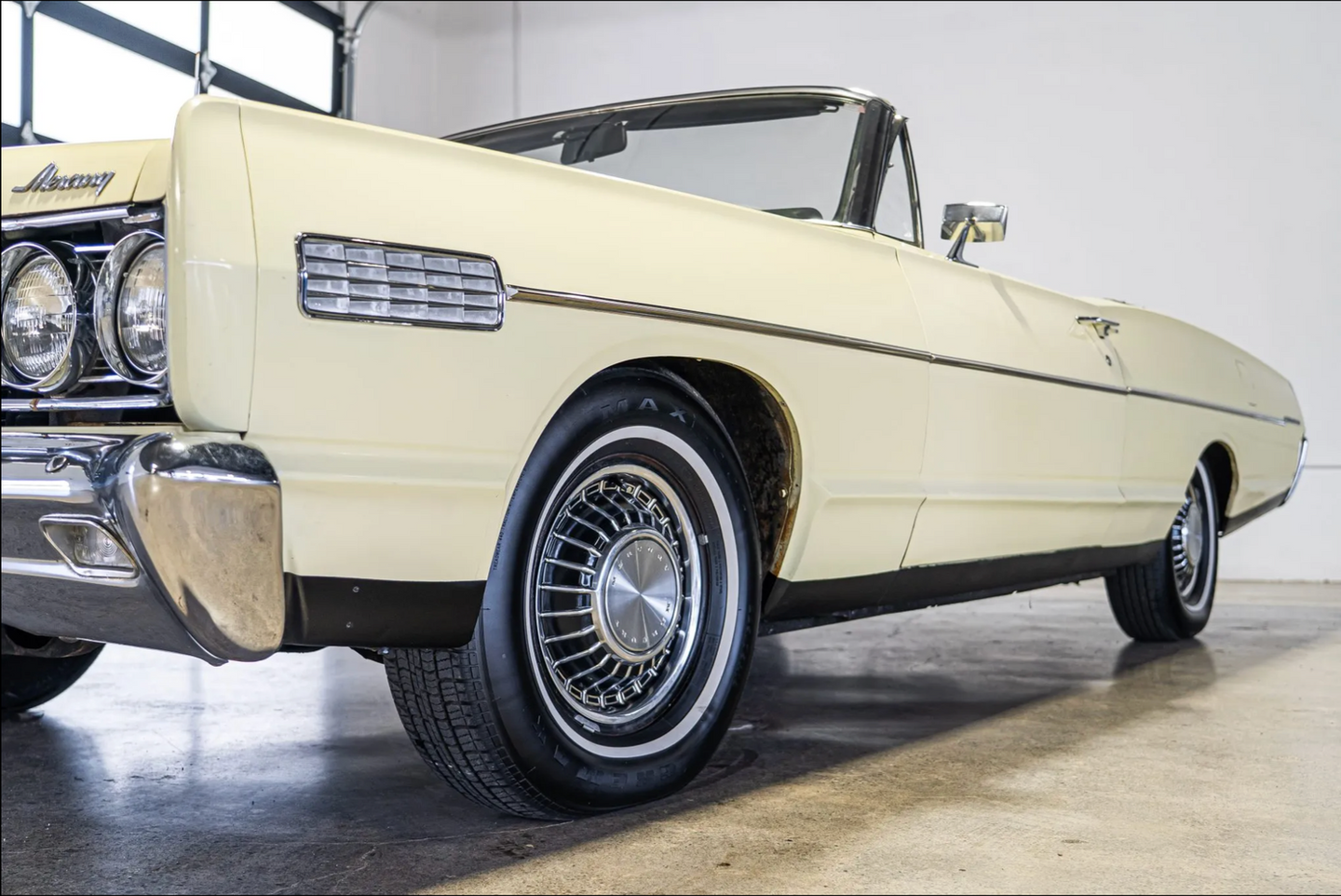 This 1967 Mercury Monterey is one of 2,673 two-door convertibles produced for the model year, and it is said to have remained with its original owner until 2005. The current owner’s uncle acquired it at that time, and it has only been driven ~300 miles since 2014. Finished in yellow over black vinyl upholstery, the car is powered by a 390ci v8 linked to a three-speed automatic transmission. Equipment includes a power-operated soft top, an AM radio, 15” wheels, power steering, and front disc brakes. The water pump has been replaced since the current owner’s acquisition in 2020.