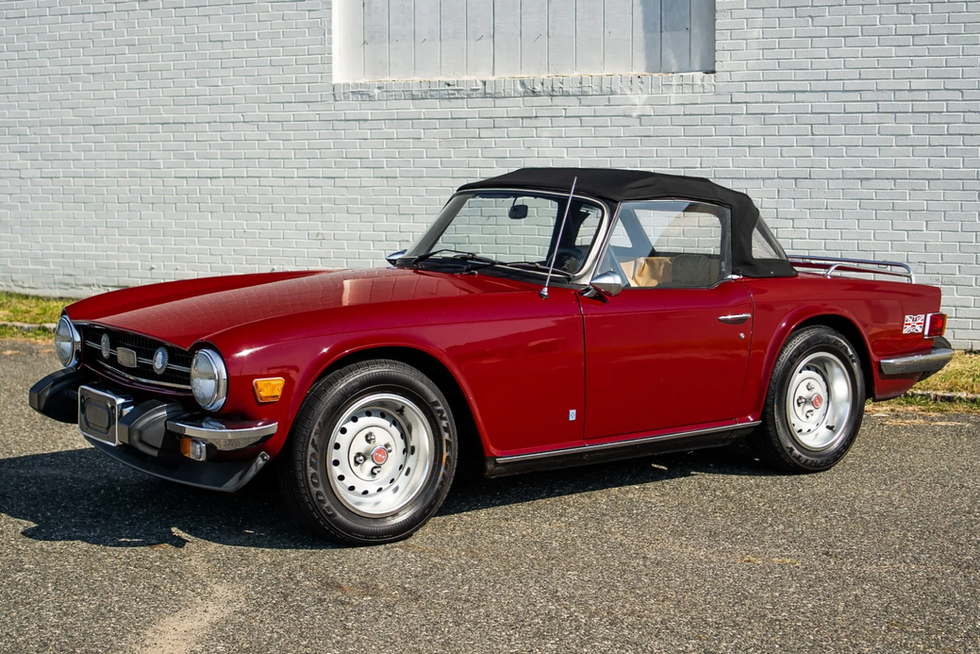 This 1975 Triumph TR6 was refurbished under previous ownership and was acquired by the current owner in 2014. Finished in burgundy over beige vinyl, the car is powered by a 2.5-liter inline-six paired with a four-speed manual transmission. Equipment includes a black convertible top, dual Weber carburetors, front disc brakes, 15″ steel wheels, a cabin heater, and a push-button AM/FM radio. This TR6 is offered by the seller on behalf of the current owner with a clean New Jersey title in the owner’s name.