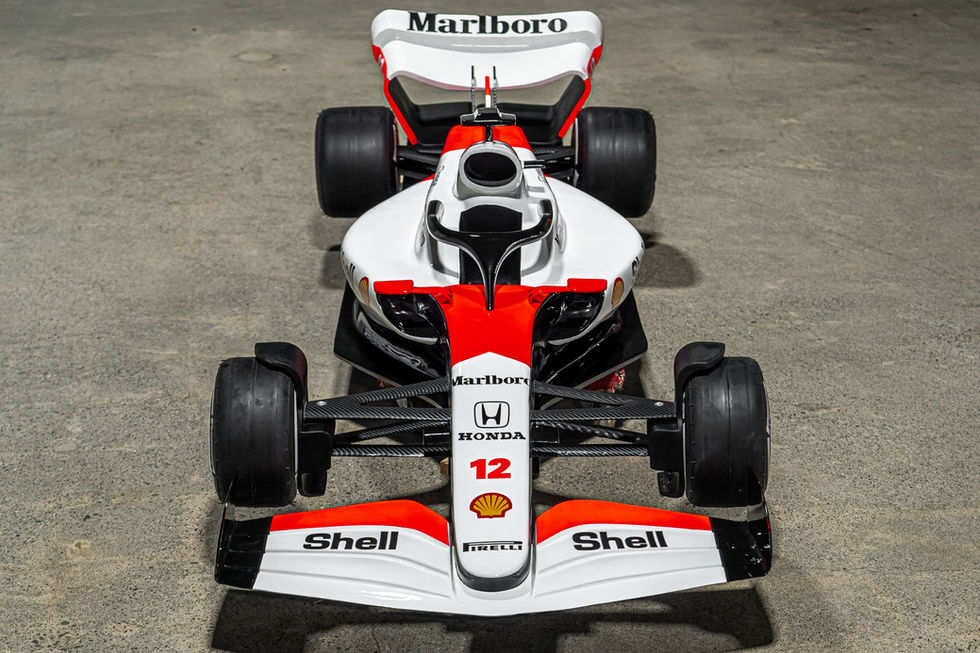 The fiberglass and carbon-fiber bodywork was built to resemble the current generation of F1 cars introduced in 2022, which included larger diameter wheels and marked notable changes to the front and rear wings.